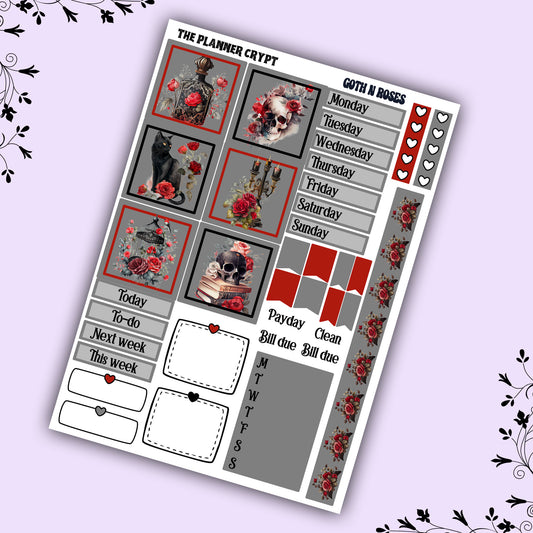 Hobonichi cousin planner sticker kit, lilac goth, gothic planner kit