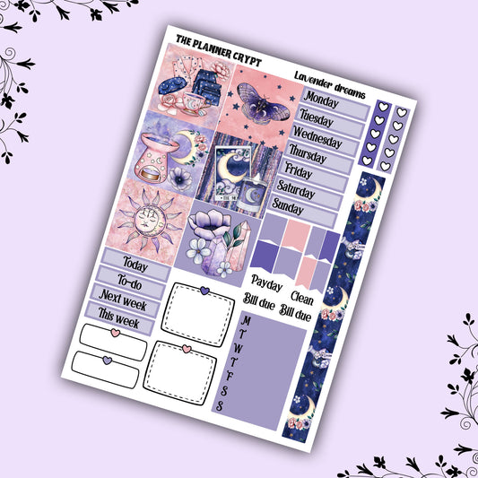 Hobonichi cousin planner sticker kit, celestial stickers, gothic planner kit, lavender dreams