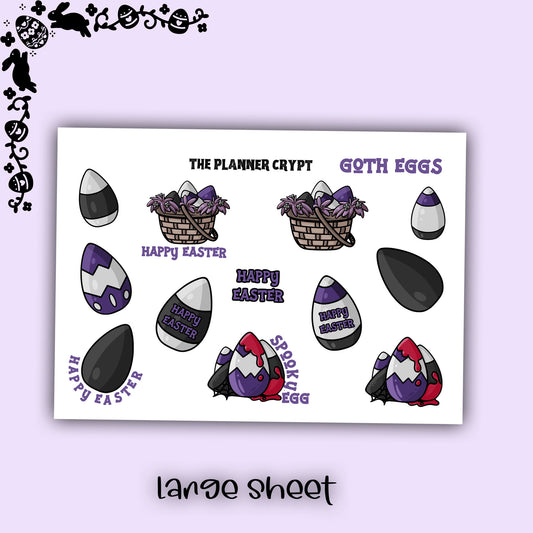 easter stickers, planner stickers, pastel goth, vertical planner, small journal, cute stickers, functional sticker, spooky bunny, goth egg