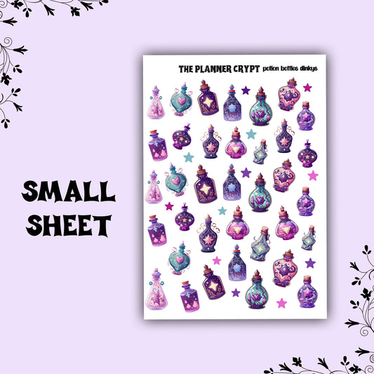 planner sticker sheet, potion bottle stickers, witchy stickers, celestial stickers, witch vibes, goth stickers, pretty stickers, moons, star