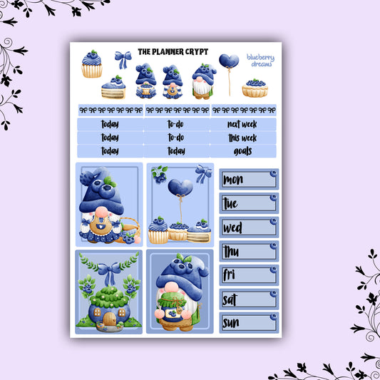 weekly planner sticker kit, mini sticker kit, stickers, vertical planner, blueberry stickers, cozy stickers, cottagecore, fruit stickers