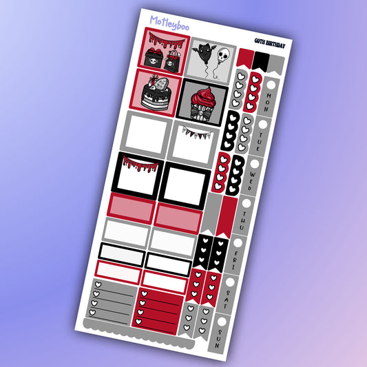 Hobonichi weeks weekly planner sticker kit, goth planner stickers, goth birthday