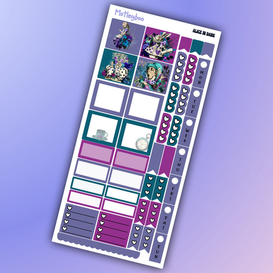 Alice in dark hobonichi weeks, sticker kit, hobonichi planner, cute stickers, hobonichi functional stickers, small planner stickers, gothic alice