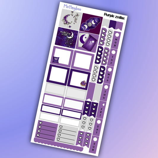 Hobonichi weeks, sticker kit, hobonichi planner, black zodiac, celestial stickers, witchy planner, hobonichi functional stickers, purple zodiac