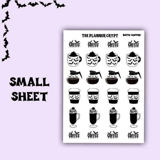Coffee stickers, bats, spooky, planner stickers, goth planner, vertical planner, gothic stickers, functional stickers, weekly planner