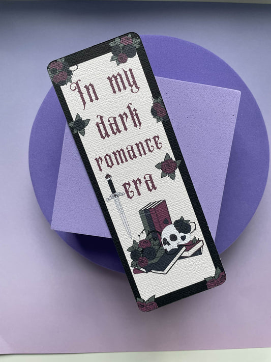 In my dark romance era bookmark, bookmarks for book nerds, gothic romance, skulls & books, bookish, book lovers, in my dark romance era