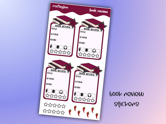 Book review sticker sheet, stickers, goth stickers, gifts for book lovers, bookish, book nerds, original art stickers, dark romance