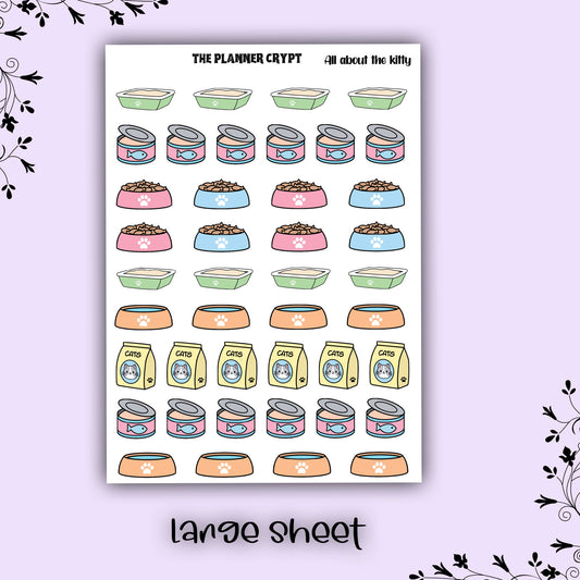 Planner sticker sheet, functional stickers, gifts for pet owners, cat food stickers, kitty stickers, all about the kitty