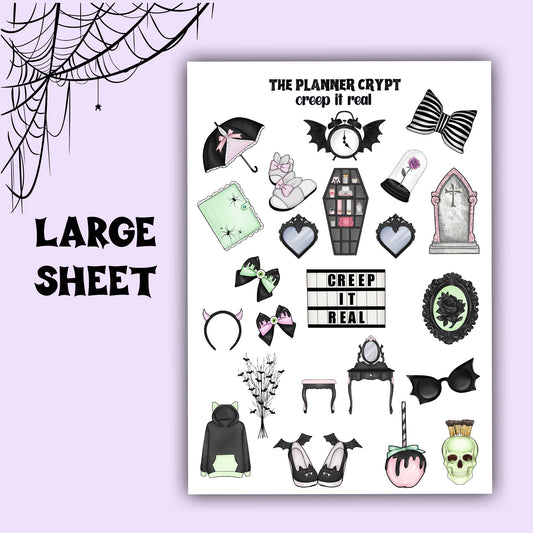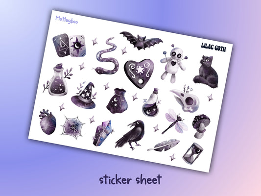 Sticker sheet, gothic stickers, cute and spooky, cute and fun, stickers, journaling stickers, planner deco stickers, lilac goth