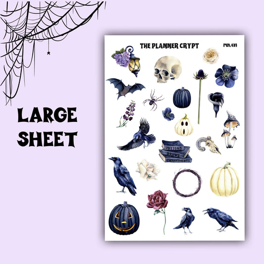 Halloween sticker sheets, weekly planning, spooky stickers, raven stickers