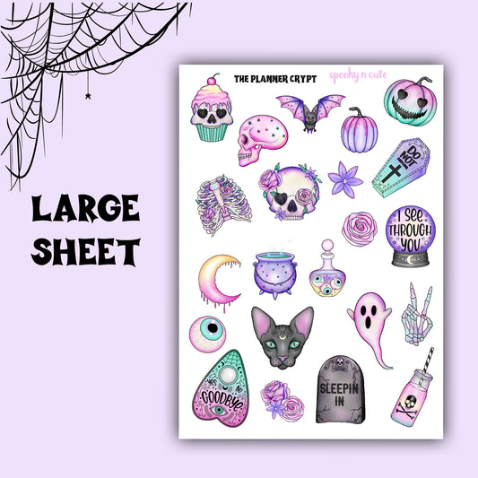 sticker sheet, planner stickers, vertical planner cute stickers, goth stickers, witch stickers, spooky stickers