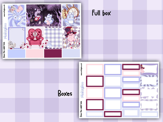 Down the rabbit hole weekly planner sticker kit, journaling, vertical planner, Alices adventures in wonderland themed, whimsical planner