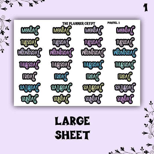 planner header stickers, weekly stickers, weekly planner stickers, pastel stickers, weekday headers, gothic planner stickers,