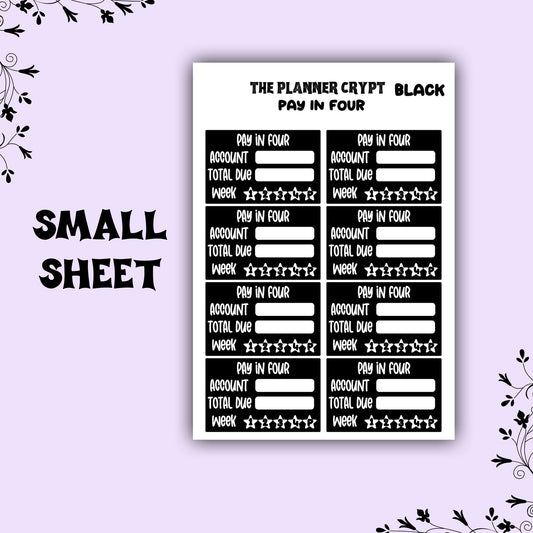 weekly planner stickers, pay in four, gothic stickers, tracking stickers, functional stickers, monthly planner stickers, budgeting stickers