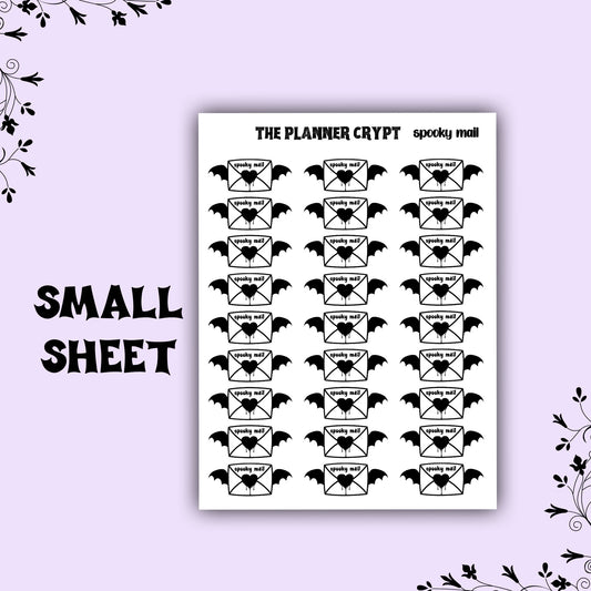 spooky mail stickers, planner stickers, functional stickers, reminder stickers, happy mail stickers, goth stickers, planner sticker sheet