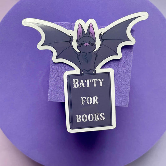 Batty for books die cut sticker, gifts for, book nerds, book lovers, bookish, vinyl sticker, book club