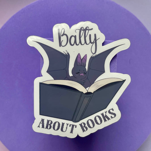 Batty about books die cut sticker, gifts for, book nerds, book lovers, bookish, vinyl sticker, book club