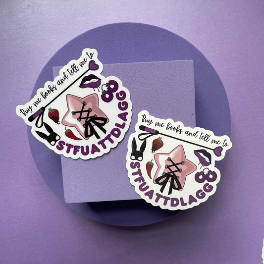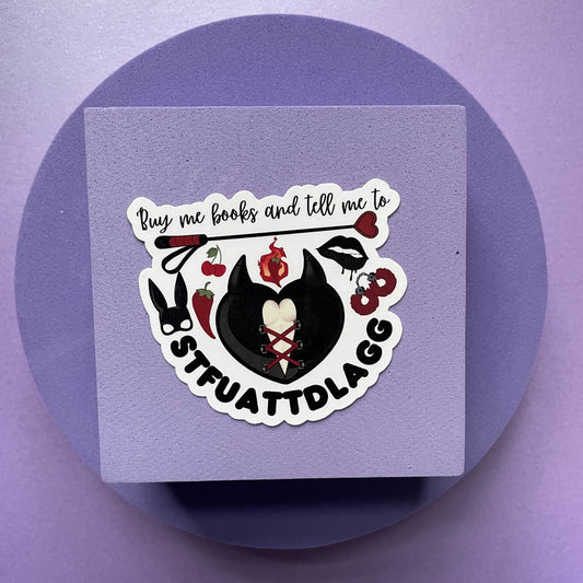 Buy me books and tell me to STFUATTDLAGG die cut, kindle and laptop sticker, gifts for bookish spicy smut book lovers, vinyl and laminated