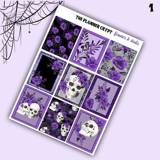 weekly planner kit, planner stickers, skull stickers, floral stickers, vertical planner, flower stickers, goth planner kit, pretty stickers