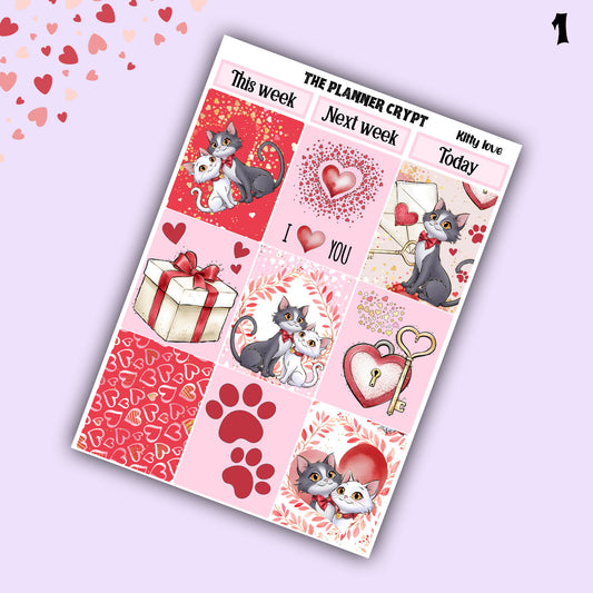 Valentines day weekly planner sticker kit, planner stickers, love stickers, vertical planner, journal stickers, planning stickers, love cats