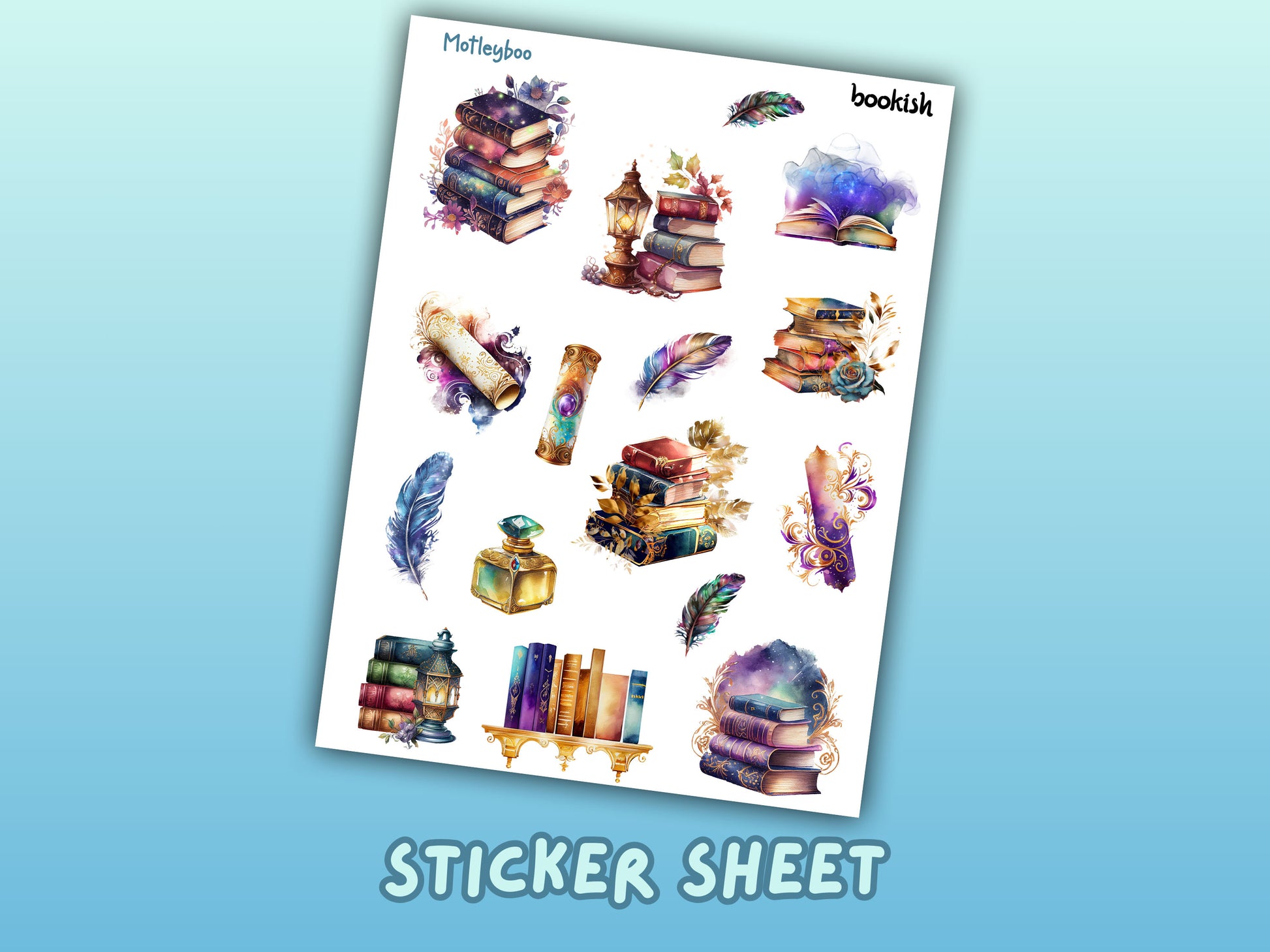 bookish stickers, fantasy stickers, watercolour stickers, sticker sheet, gifts for book lovers, gifts for book nerds, gothic stickers