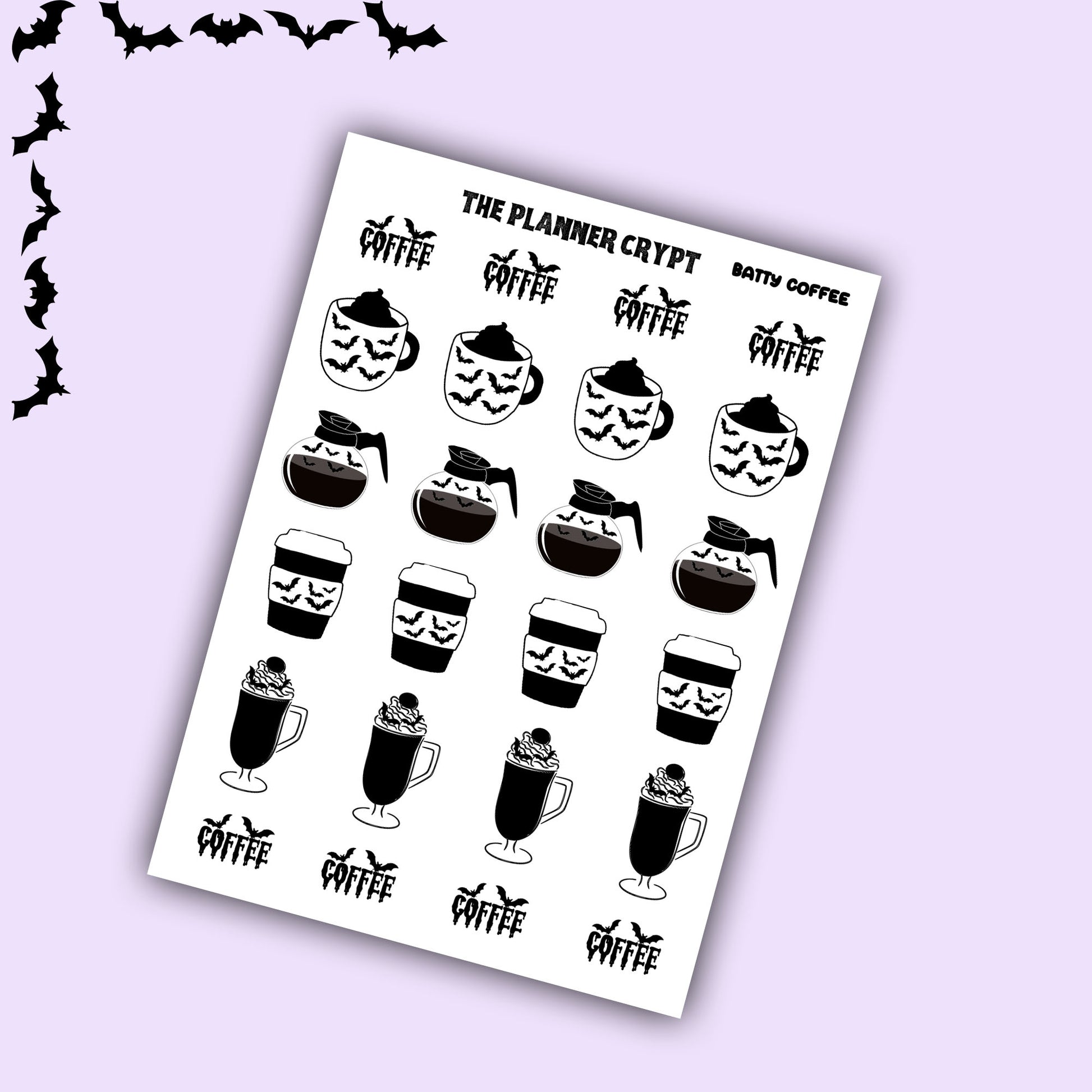 Coffee stickers, bats, spooky, planner stickers, goth planner, vertical planner, gothic stickers, functional stickers, weekly planner