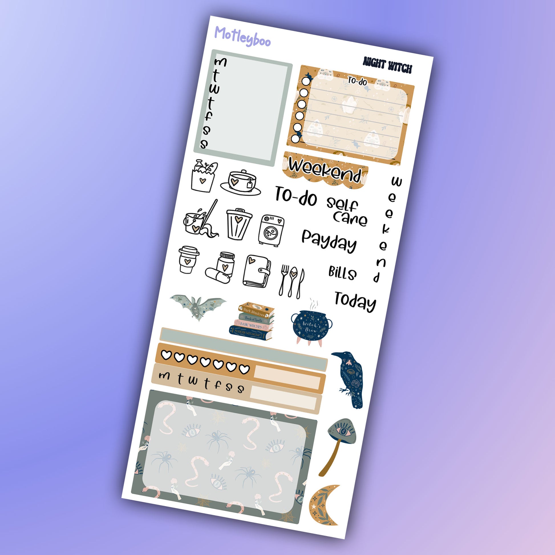 Hobonichi weeks, sticker kit, hobonichi planner, goth stickers, witch planner, pagan stickers, planner stickers, witch sticker, night witch