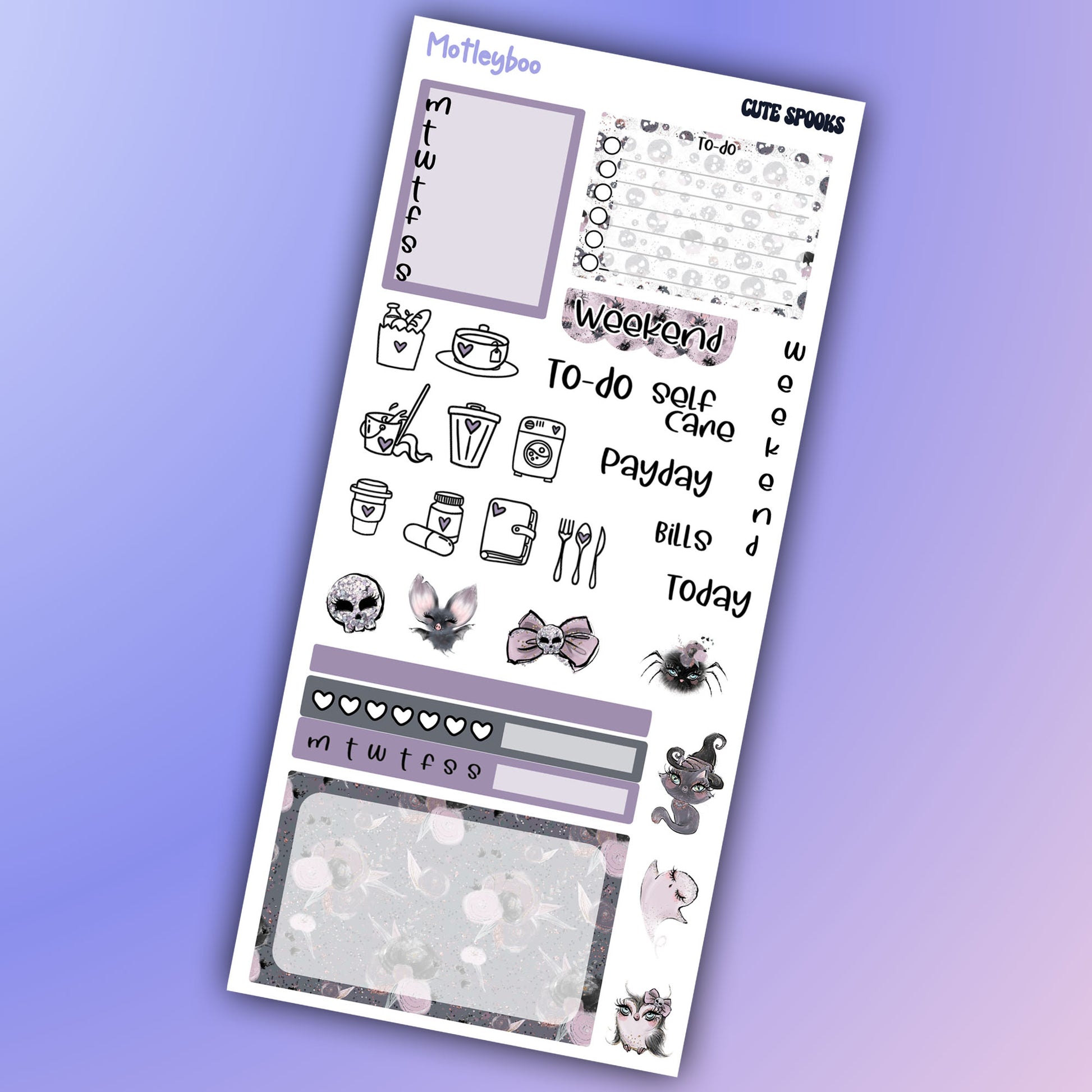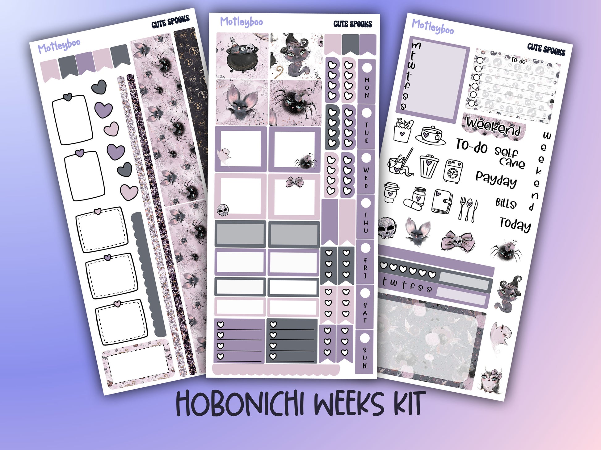 Hobonichi weeks, weekly planner sticker kit, goth planner stickers, bullet journal stickers, small planner stickers, cute spook