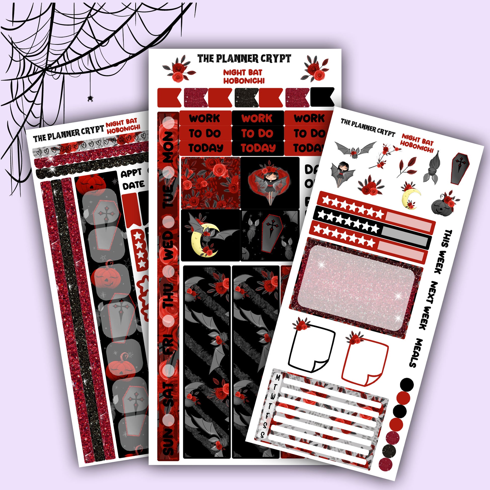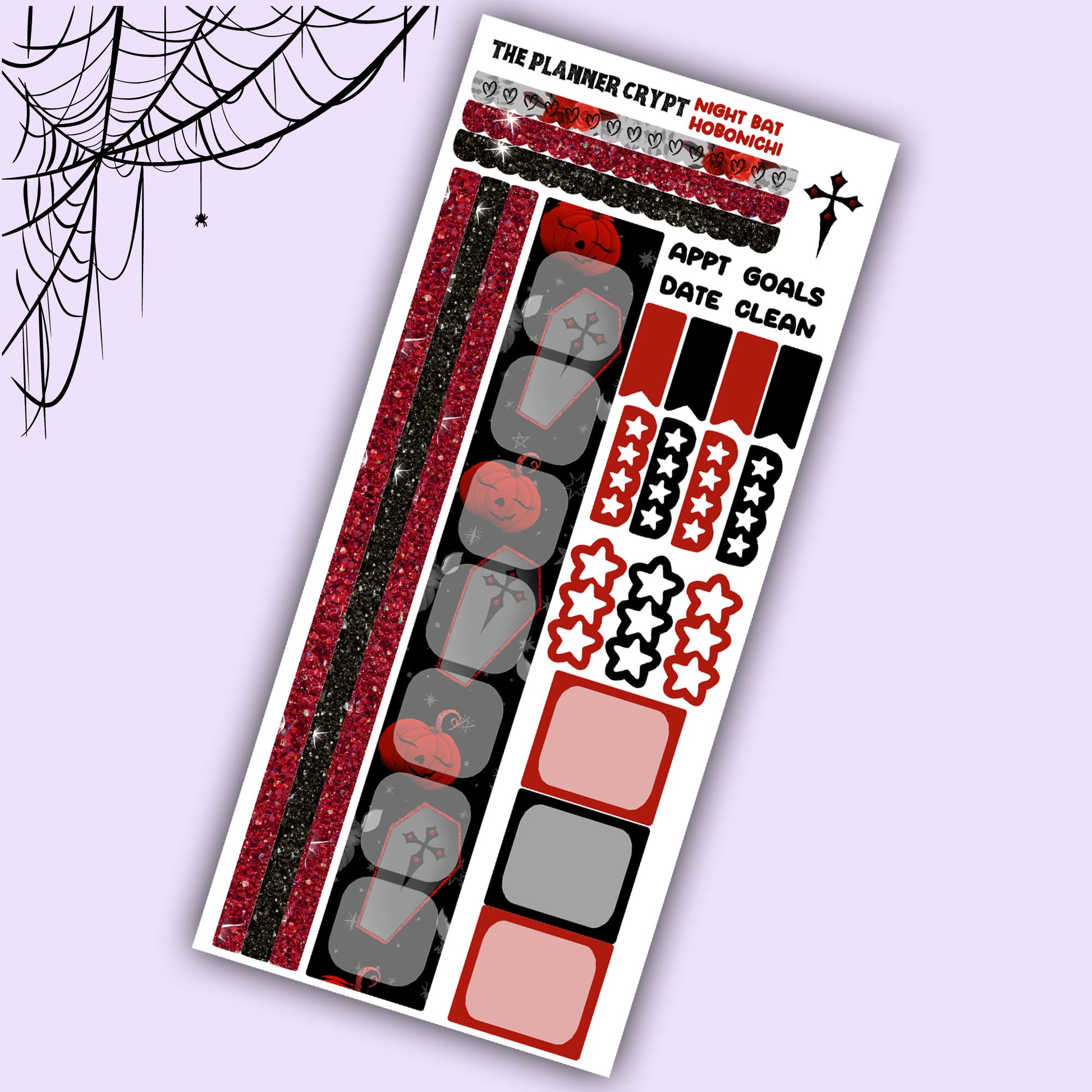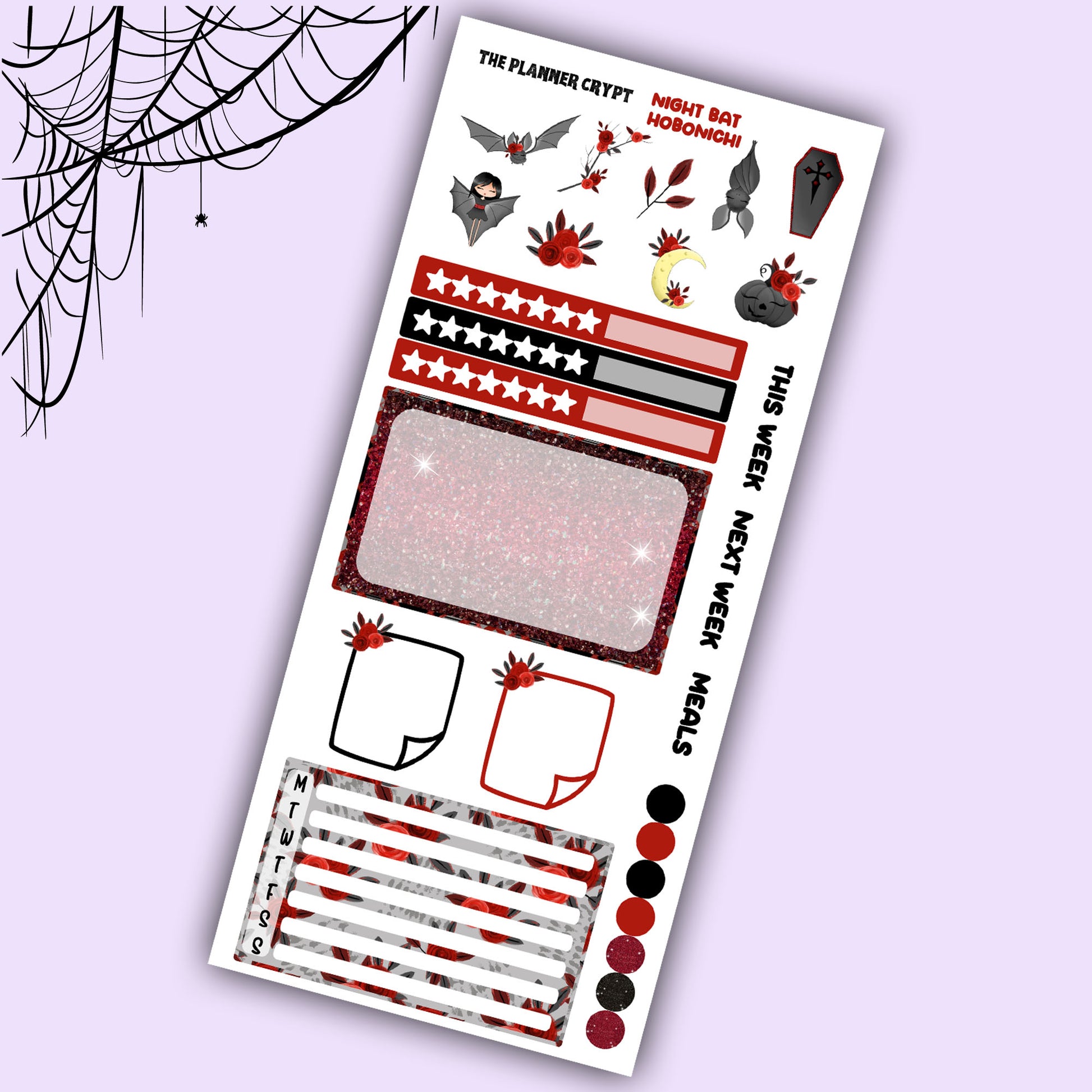 Hobonichi weeks, weekly sticker kit, hobonichi planner, goth girl stickers, planner, functional sticker, planner stickers, bat stickers