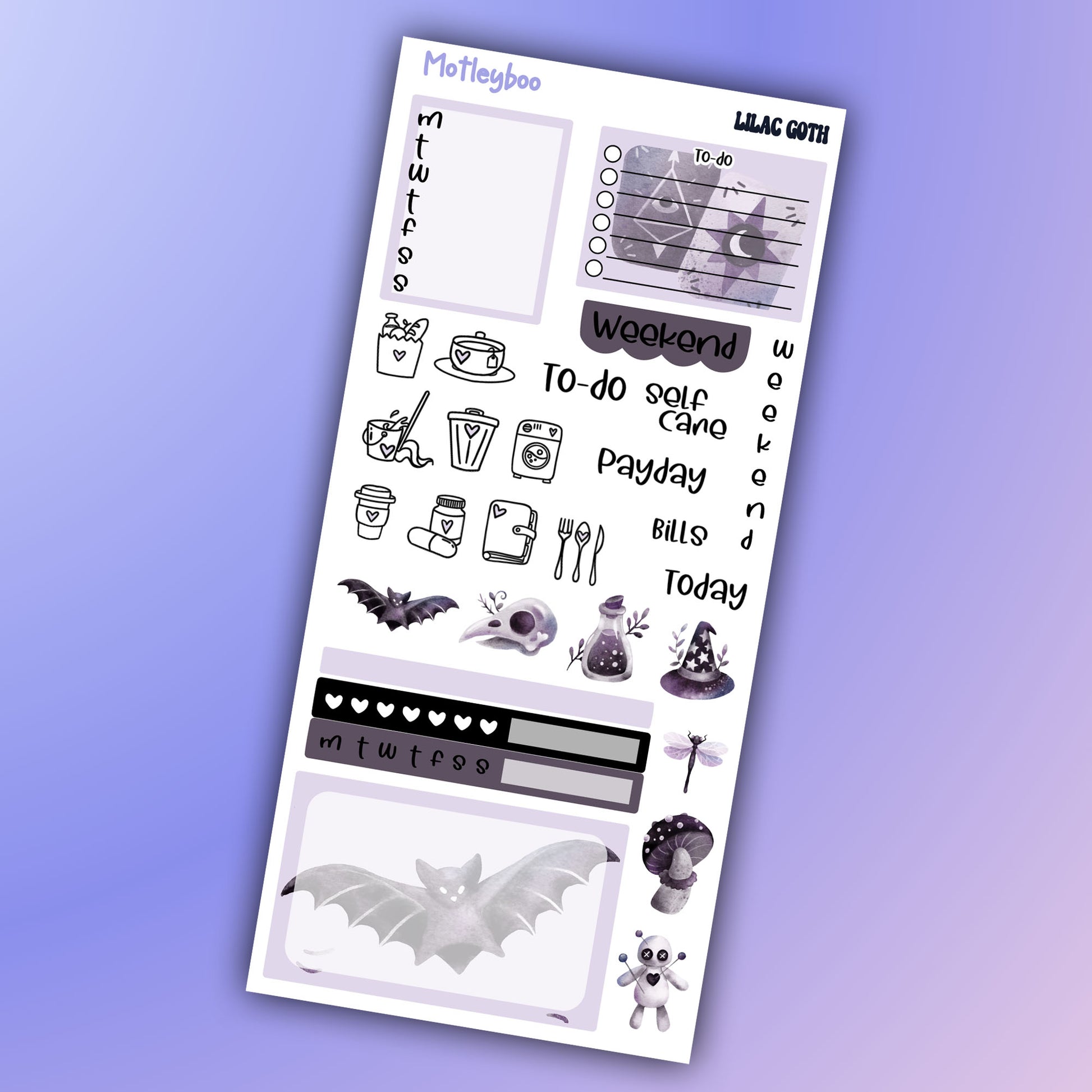 Lilac goth hobonichi weeks weekly planner sticker kit