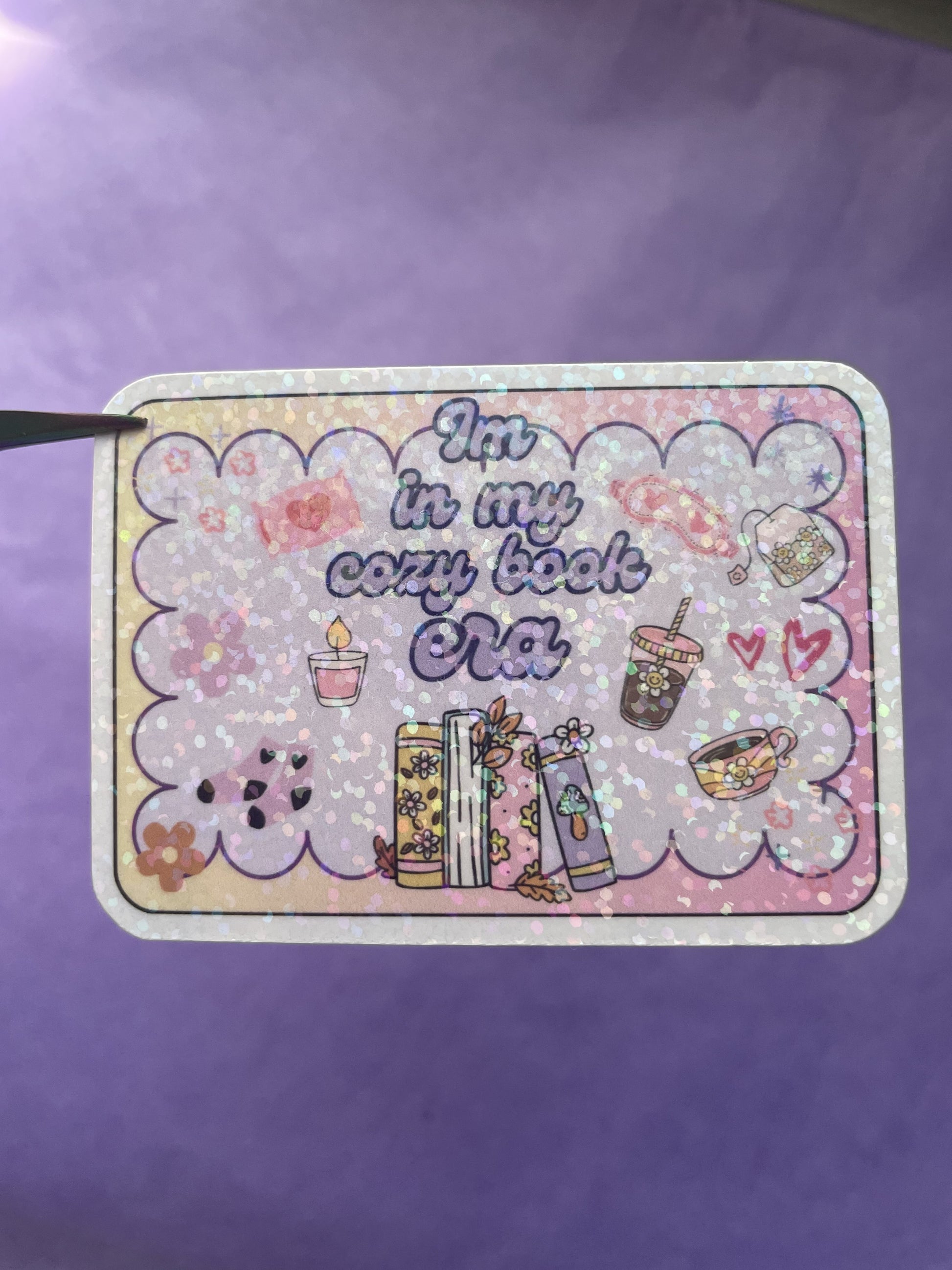 In my cozy era sticker, gifts for book lovers, cute sticker, die cut sticker, laminate sticker, laptop sticker, vinyl sticker, glitter