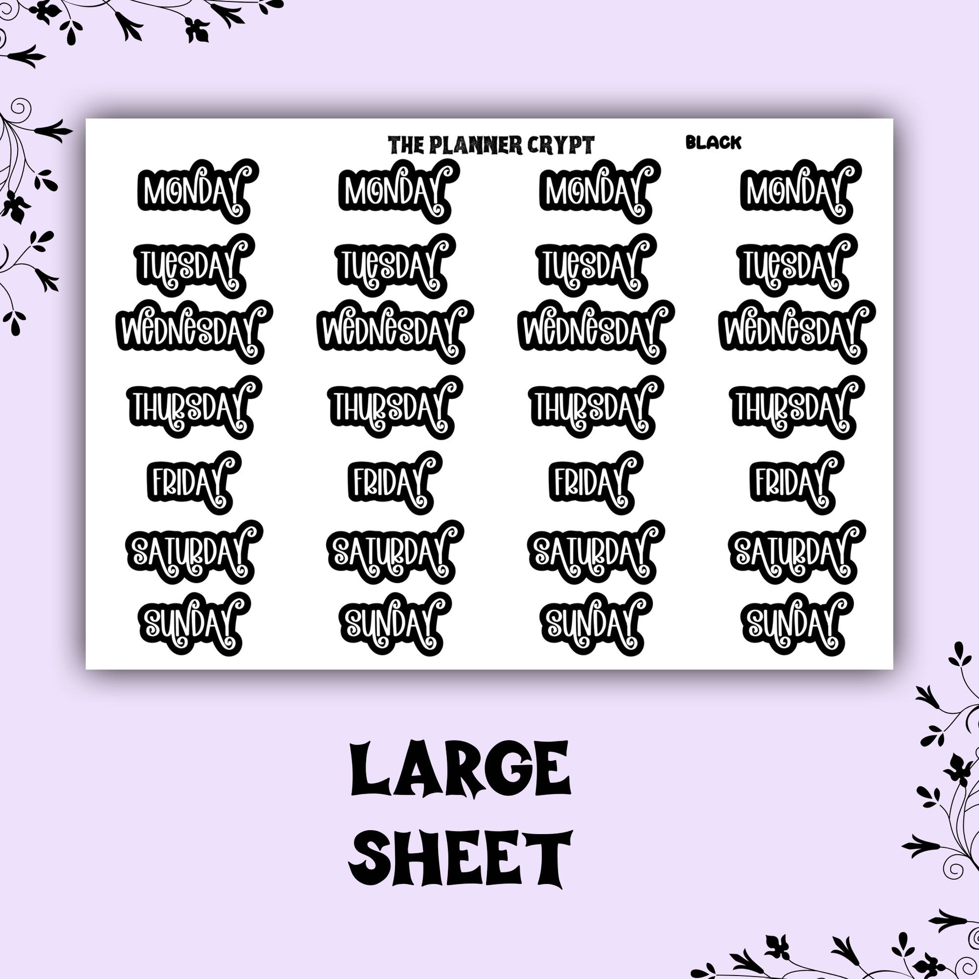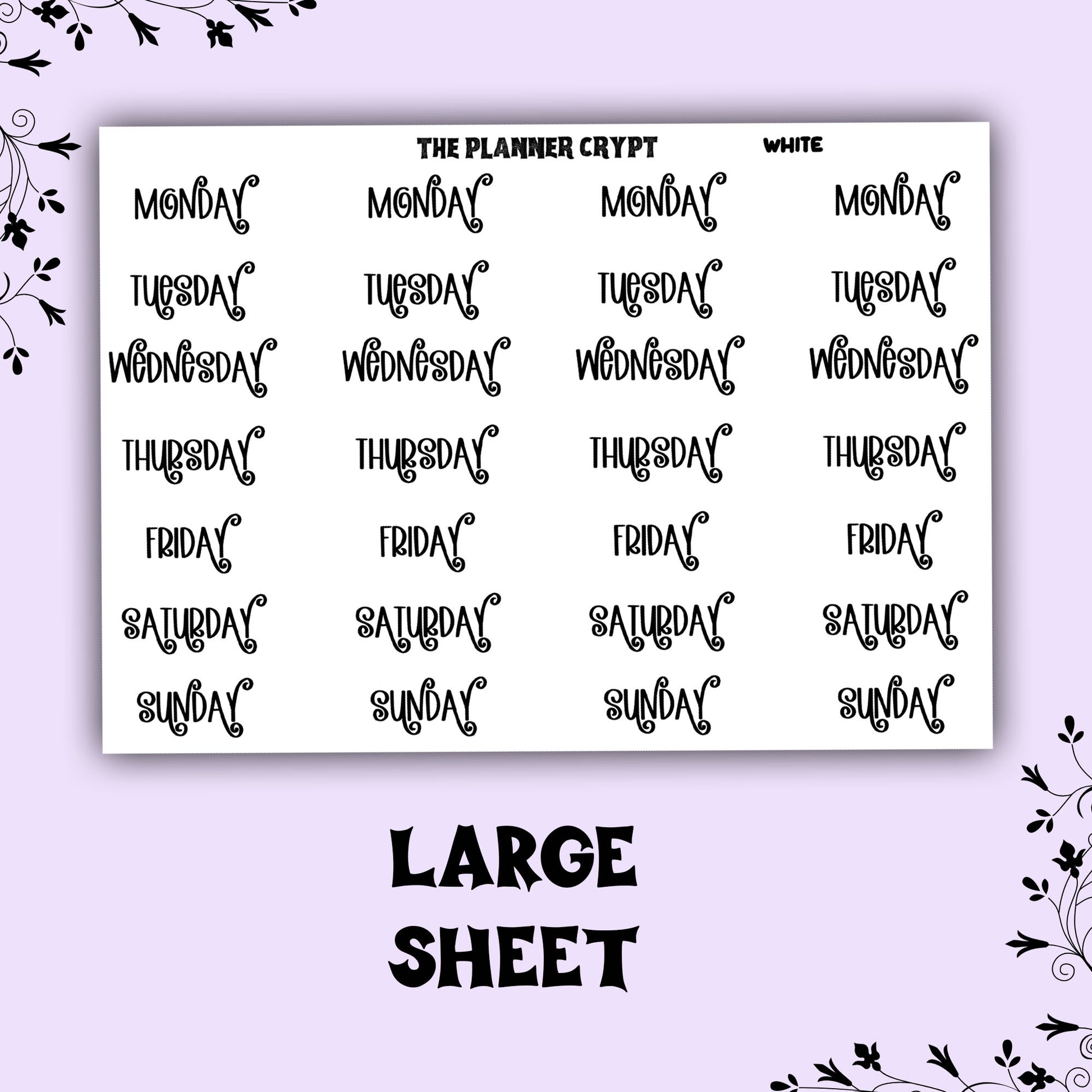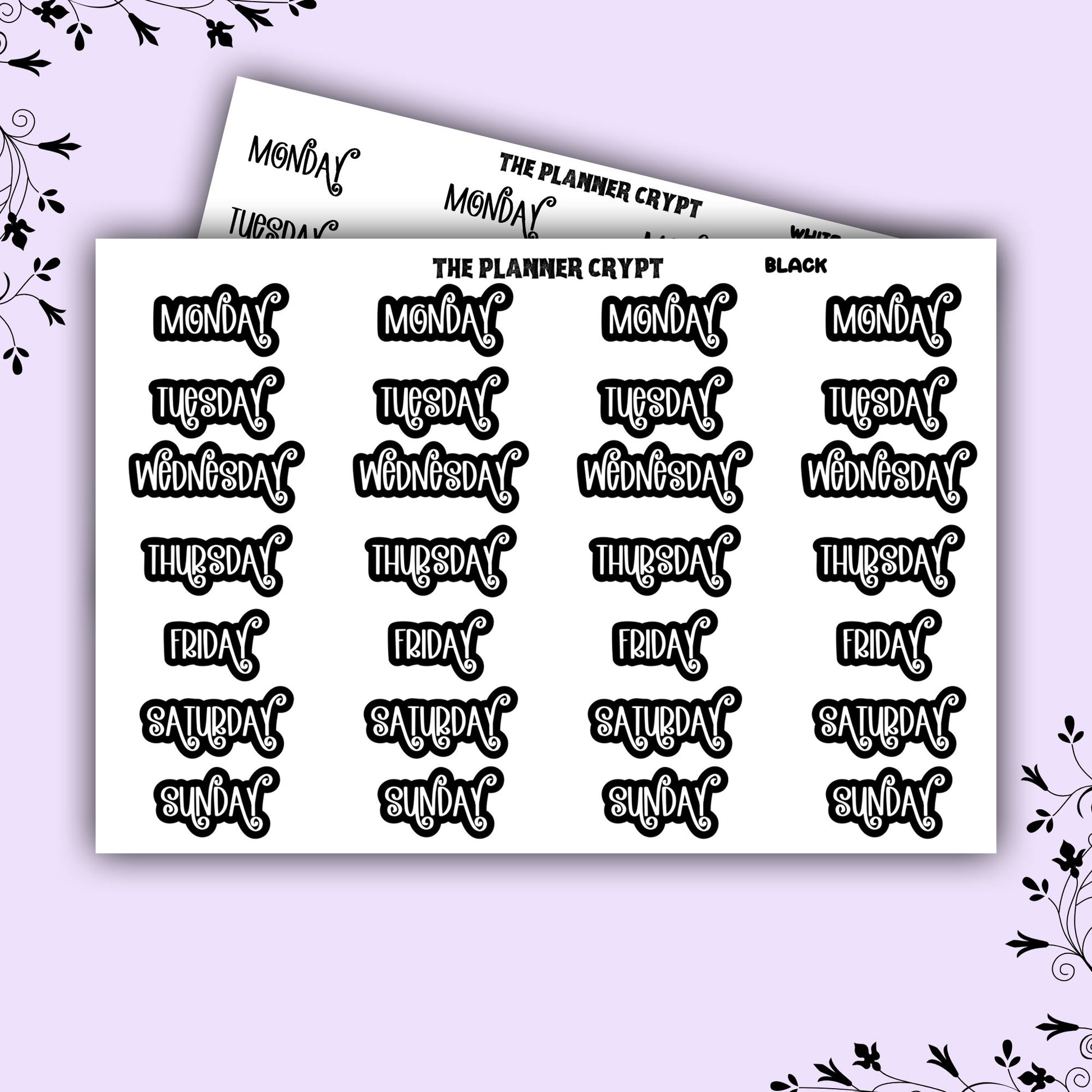 planner header stickers, weekly stickers, weekly planner stickers, pastel stickers, weekday headers, gothic planner stickers,