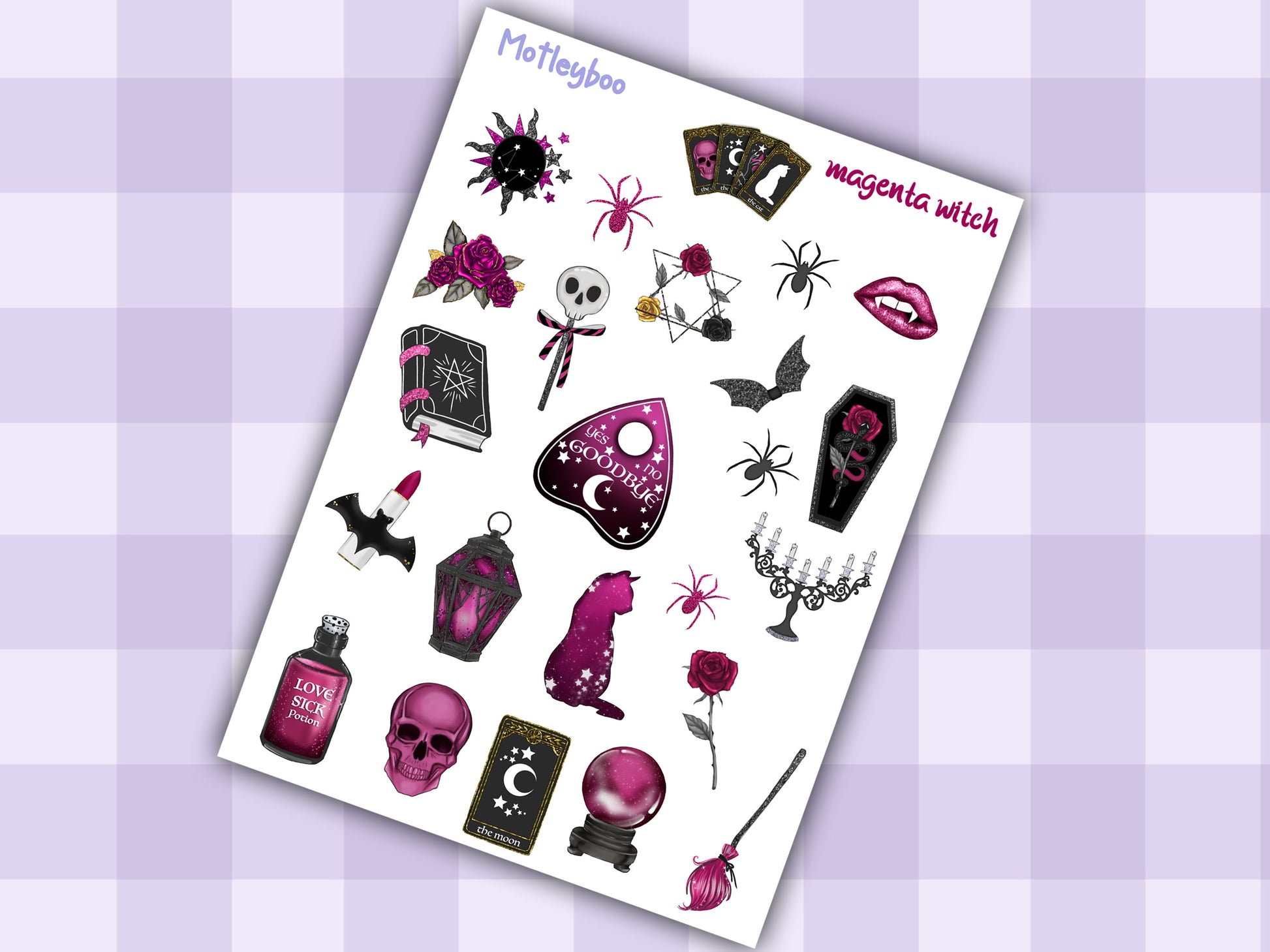 Perfect for spooky season this cute sticker sheet featuring cute and spooky spellbinding witchy deco will add a touch of spooky cuteness to planners, books, laptops, journals