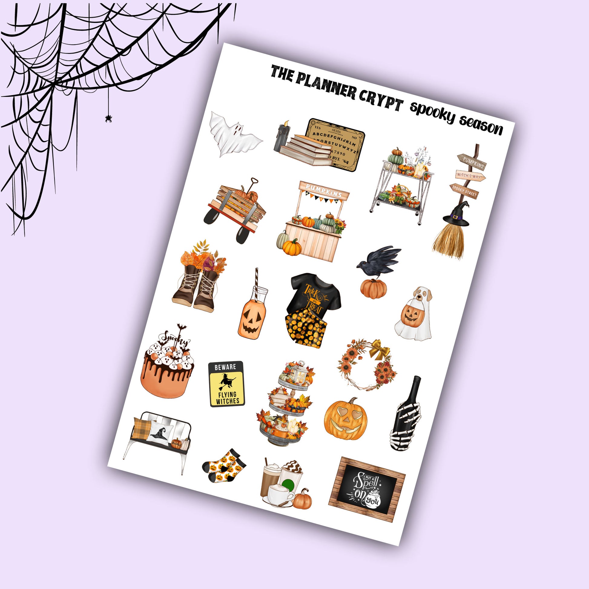 spooky time large deco sticker sheet, includes 22 cute and spooky stickers, sticker sheet matches spooky season weekly planner kit for a fall, Autumn vibe