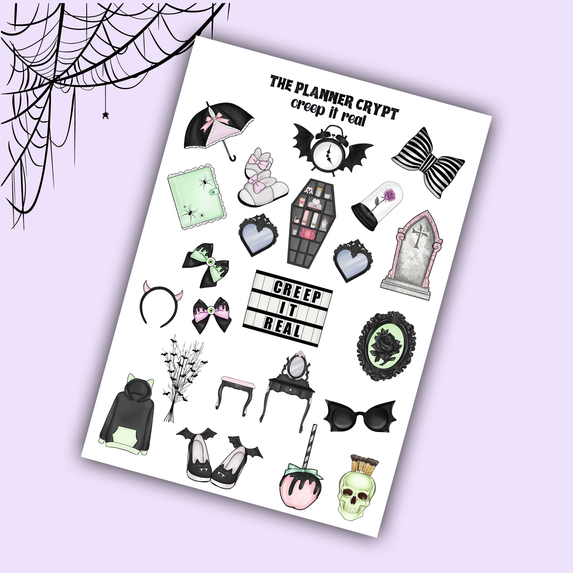 planner stickers, gothic stickers, pastel goth, vertical planner, stickers, deco stickers, weekly planners, gothic planner, spooky