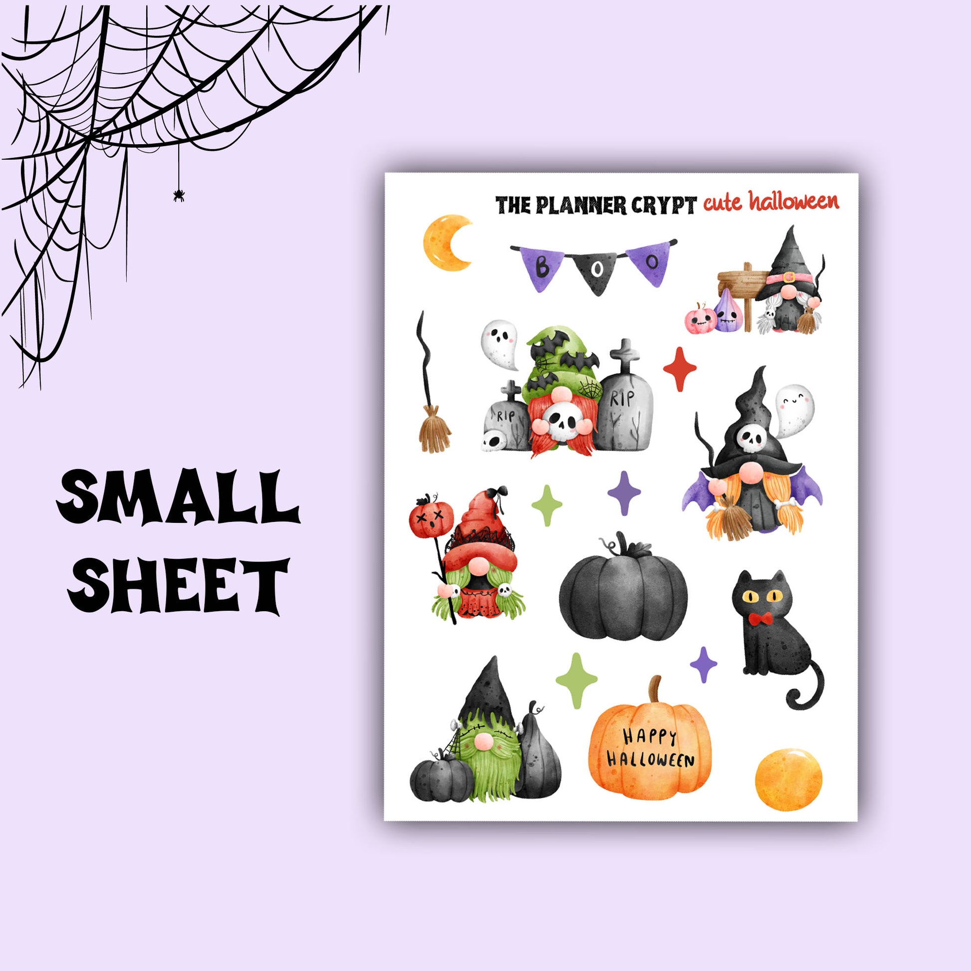 cute Halloween sticker sheet in large and 1/4 sheet size to match cute Halloween vertical and hobonichi kits