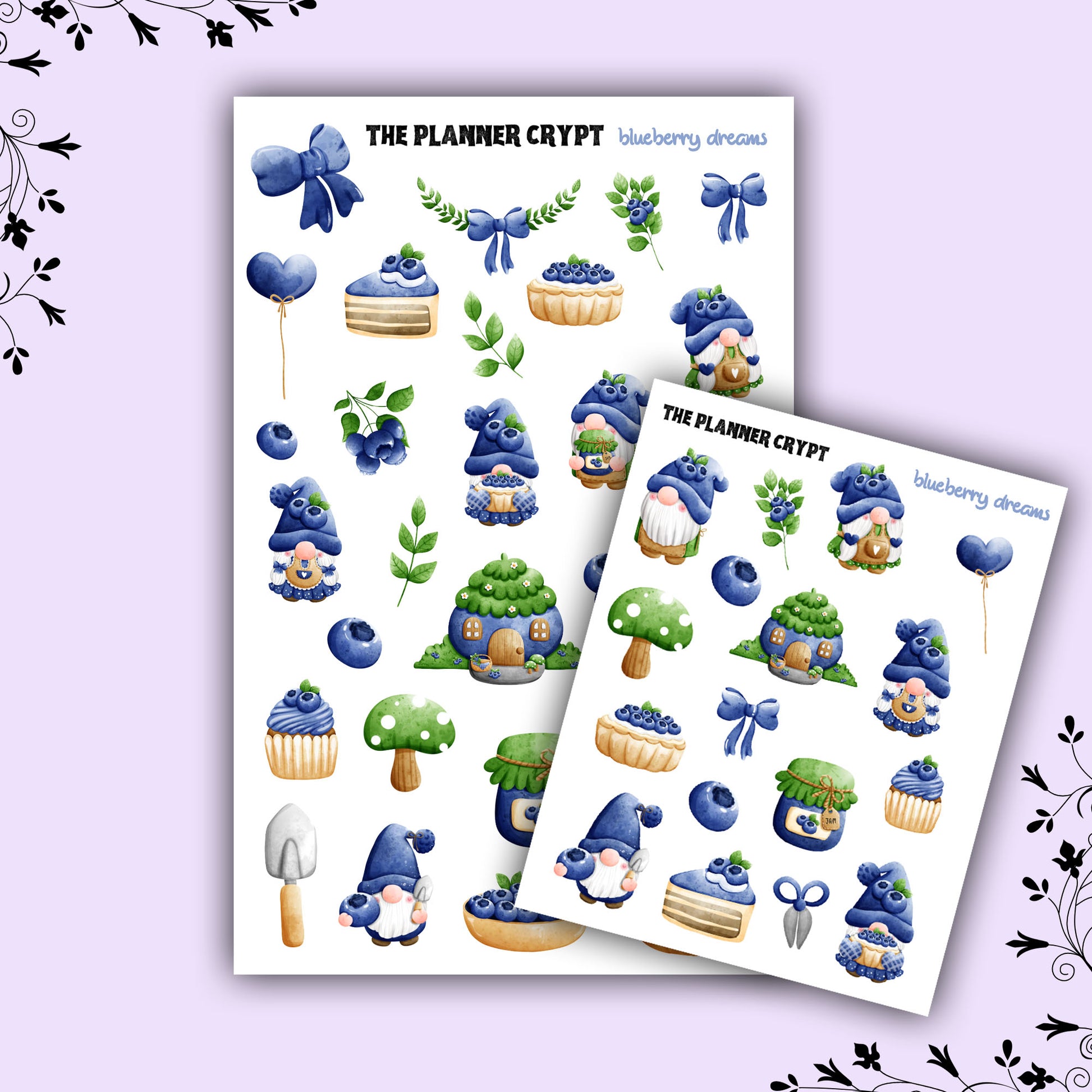 Spring season, planner stickers, vertical planner, deco stickers, weekly planner, gnome stickers, blueberry stickers. gifts for gardeners