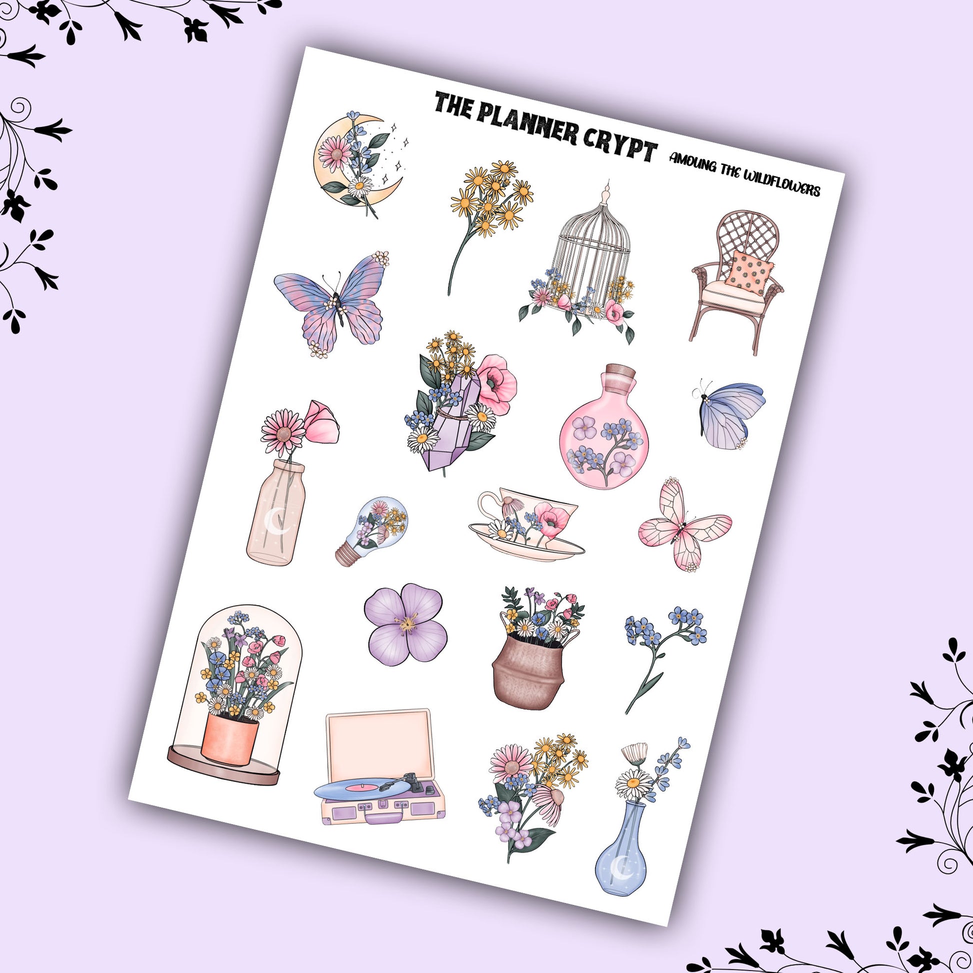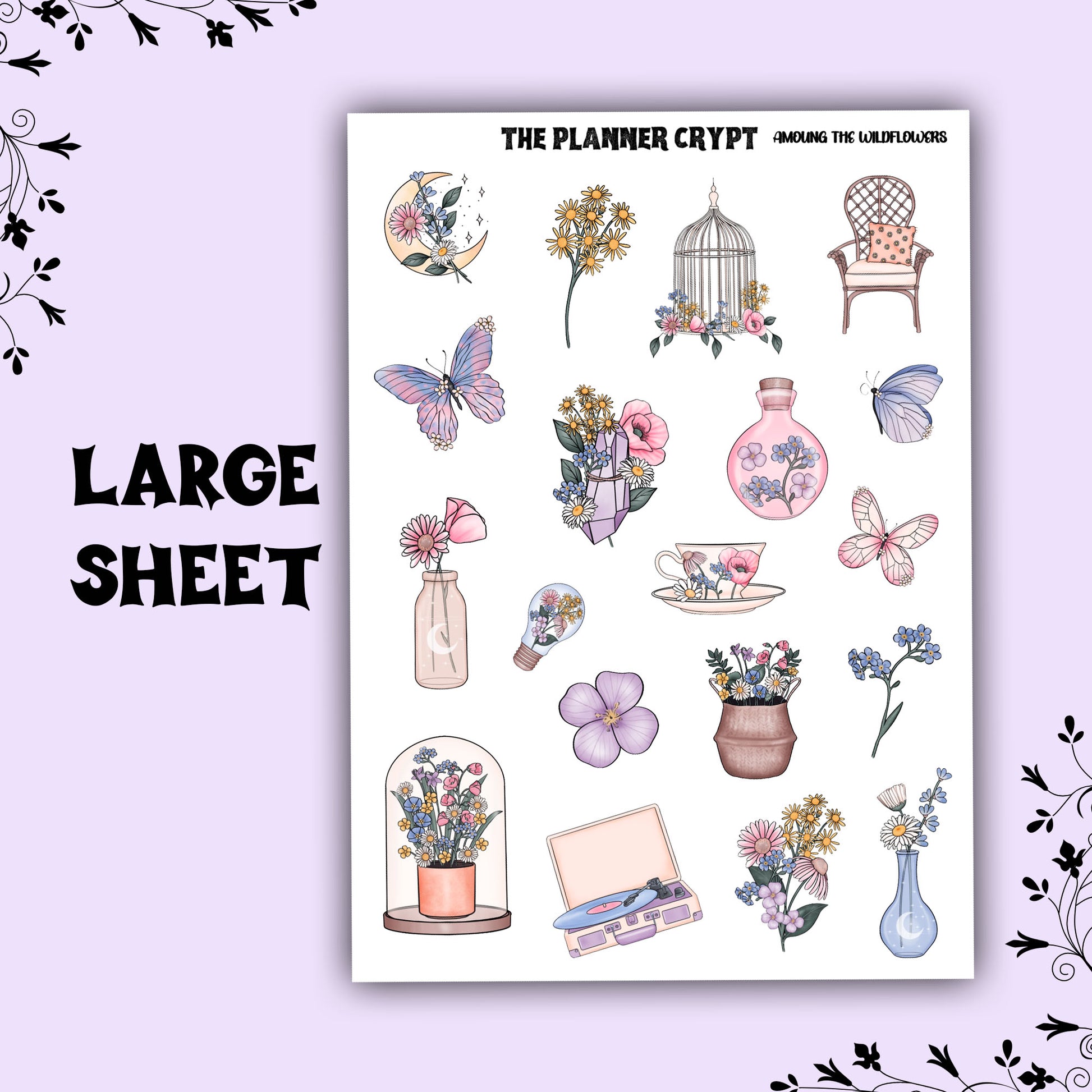 Wildflower sticker sheet, witchy stickers, planner stickers